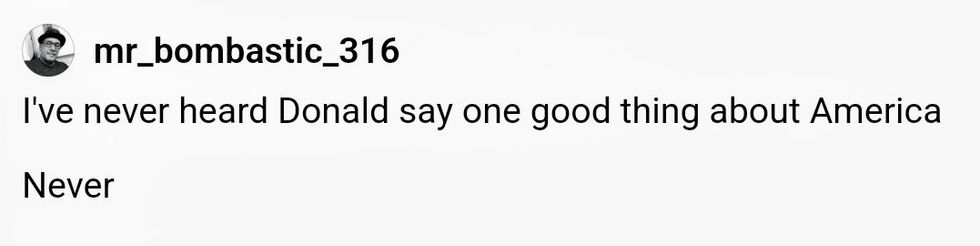 "So, I got a message to Donald Trump and all of his negativity and whining: stop shit-talking America!"