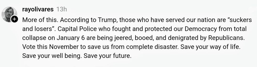 "We didn't let him get away with it in 2020 and I hope and pray we won't let him get away with it in 2024."
