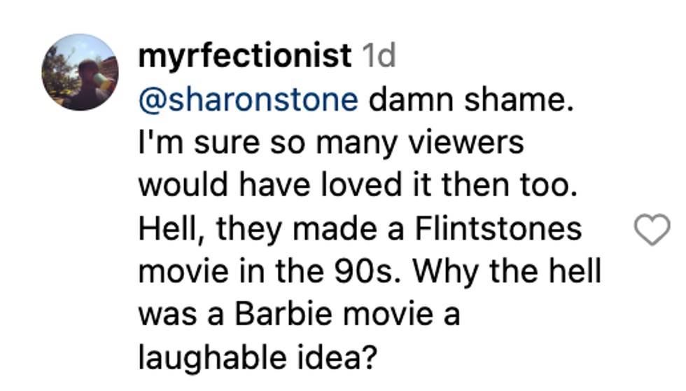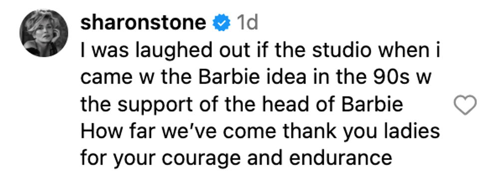 Sharon Stone was one of them, thanking Ferrera and the rest of the cast and crew for their "courage and endurance." Stone also revealed she had been "laughed" at when she suggested the idea of a Barbie movie in the 1990s.