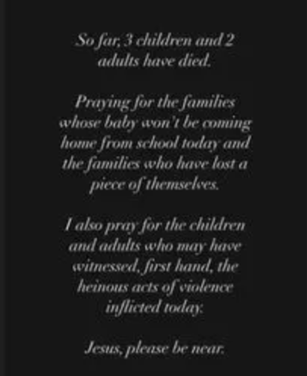 "Praying for the families whose baby won't be coming home from school today and the families who have lost a piece of themselves."