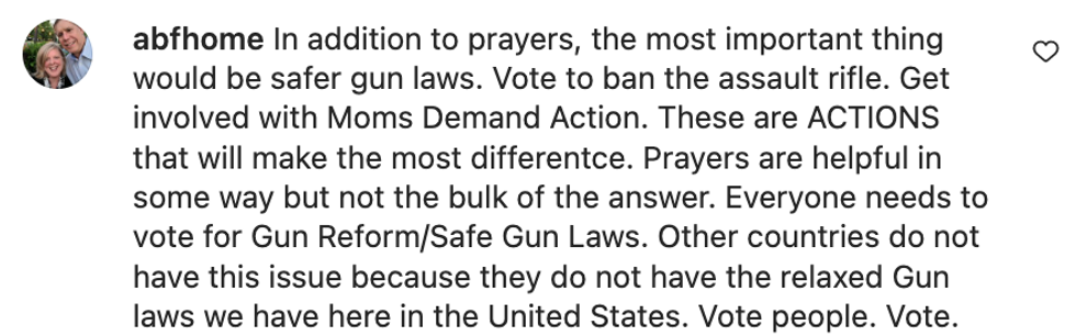"I woke up this morning in tears feeling guilt and sadness that we are ok and some families are not. I woke up scared to take our babies back to school or anywhere for that matter. I woke up sad for everyone, for our country, our world."