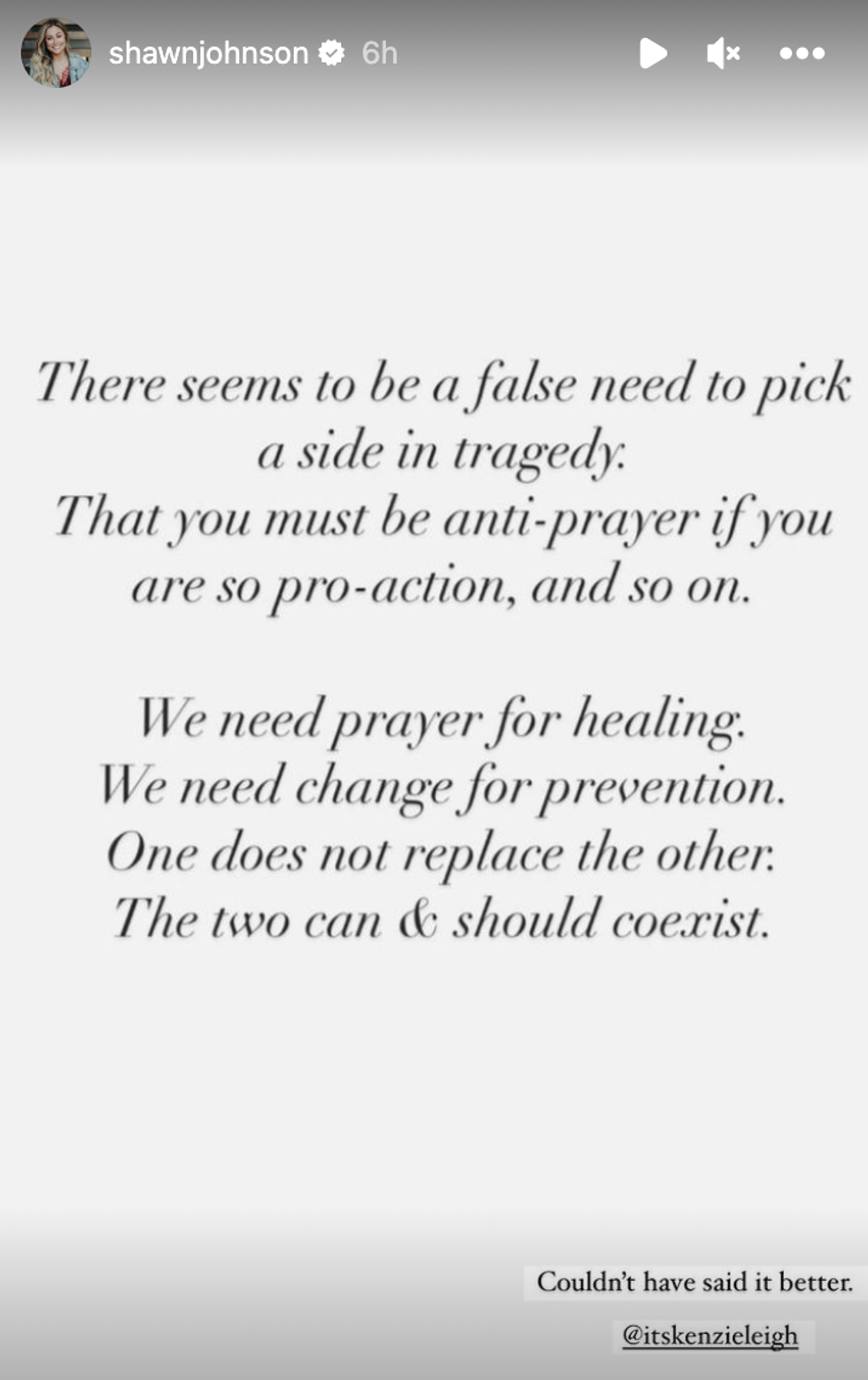 "I know prayers can’t take it back but I’m still going to pray like hell. I believe our God is good. It’s all I can believe in right now. My faith is all I can lean on right now. God, please save us all from this evil."