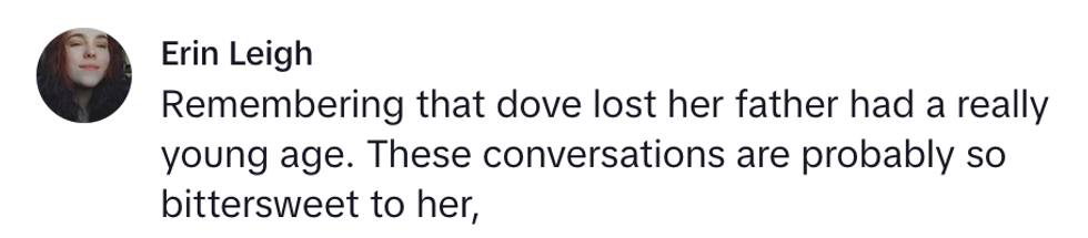 "That's what it should be, right? I'm so moved to hear you say that about your girls, because I truly was best friends with my dad. He tried his best."