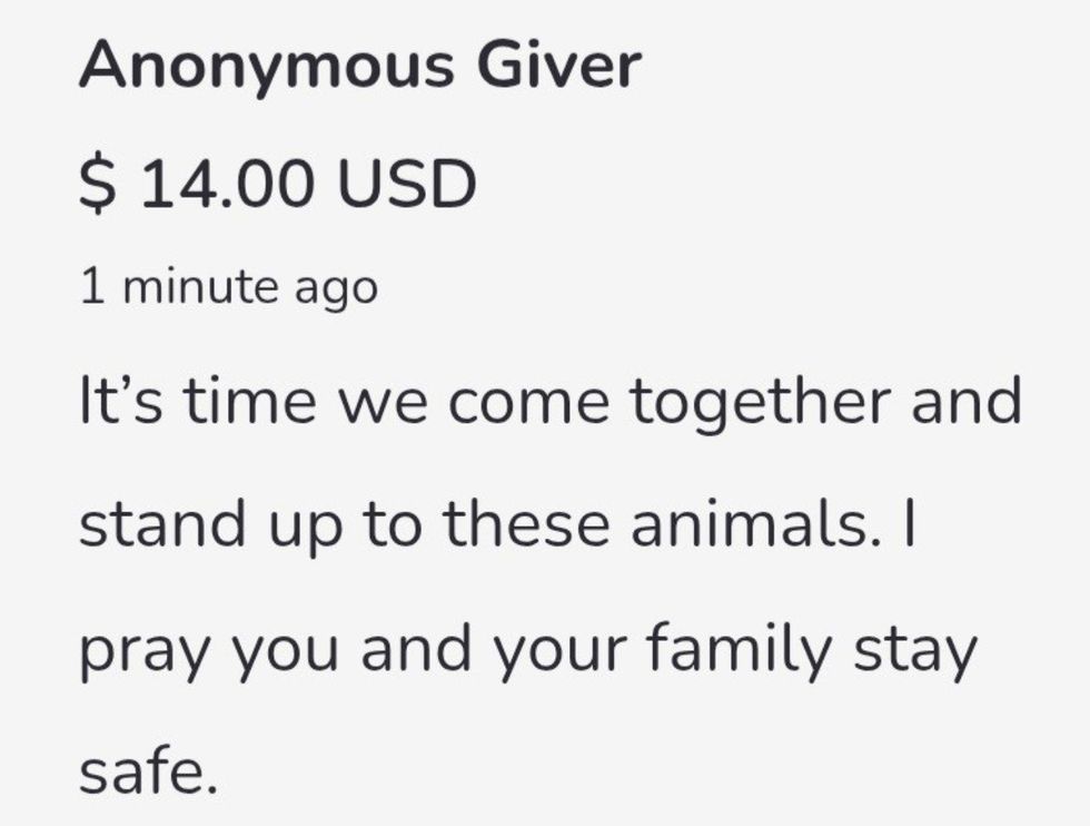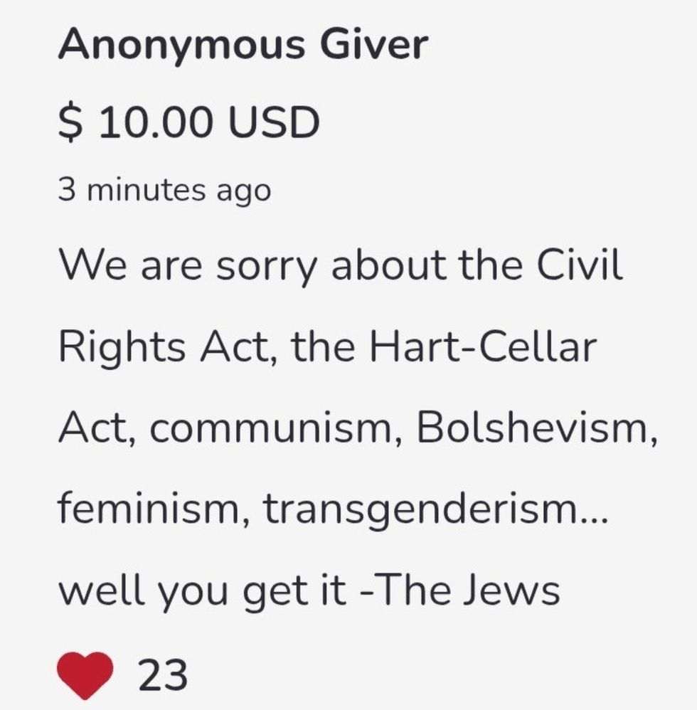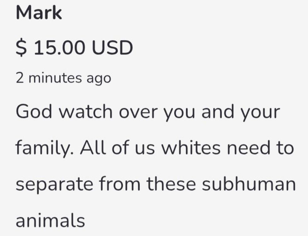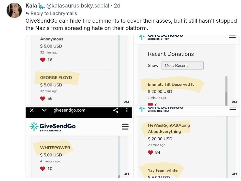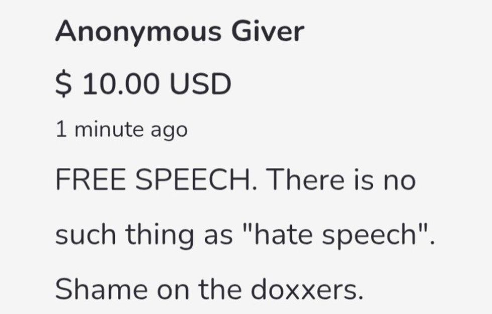 After screenshots of comments went viral, GiveSendGo hid them, so donors put their message in their username.