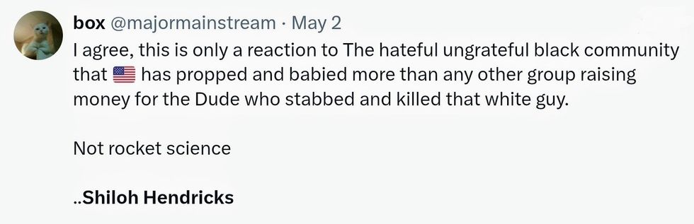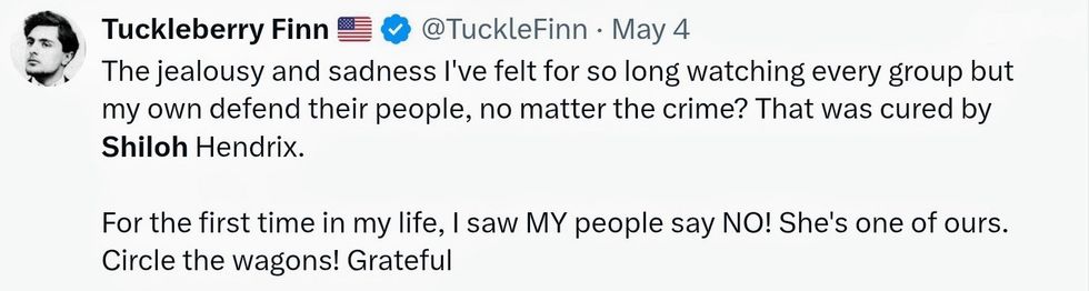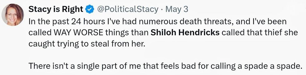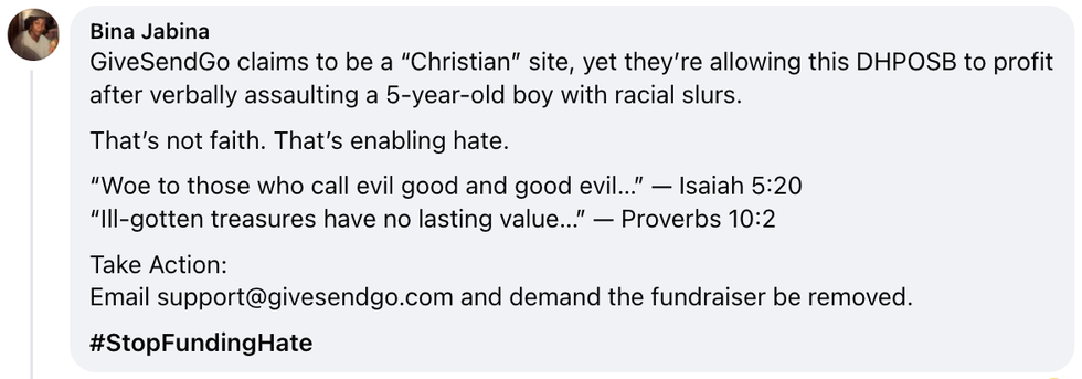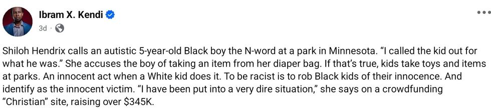 Hendricks—rebranding herself as Shiloh Hendrix because everyone knows the letter X makes everything cooler—turned to the crowdfunding platform GiveSendGo to use her 15 minutes to get rich. Posting a fundraiser titled "Help Me Protect My Family," Hendricks is hoping hate helps her become a millionaire.