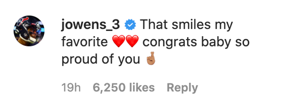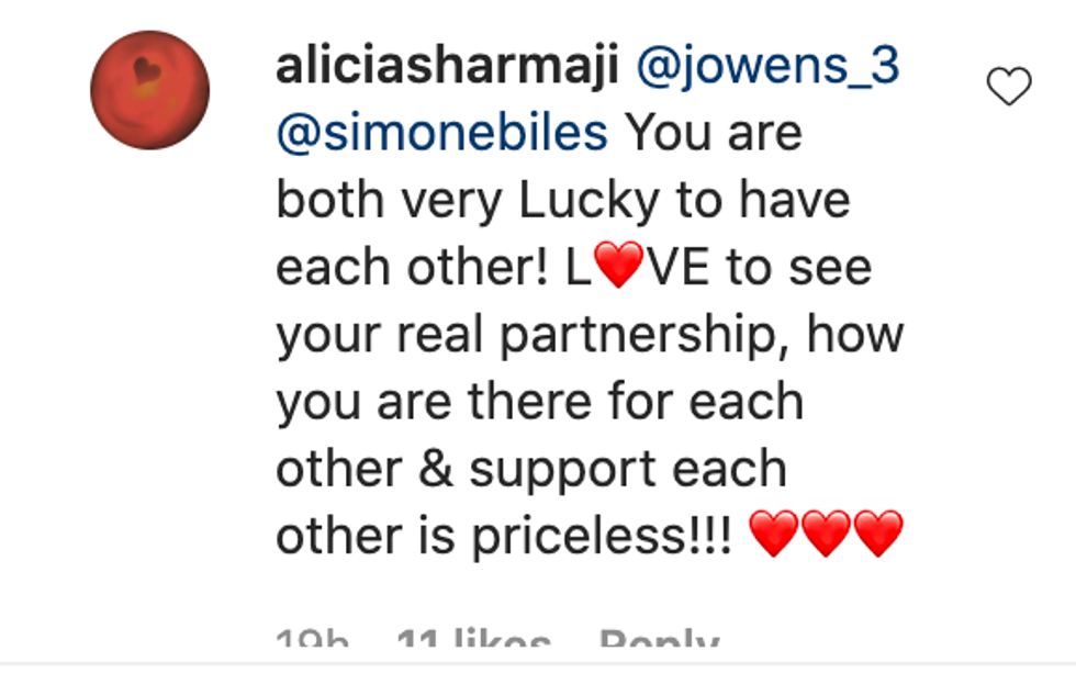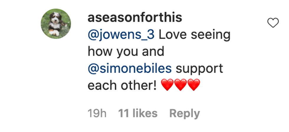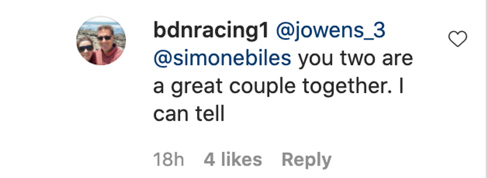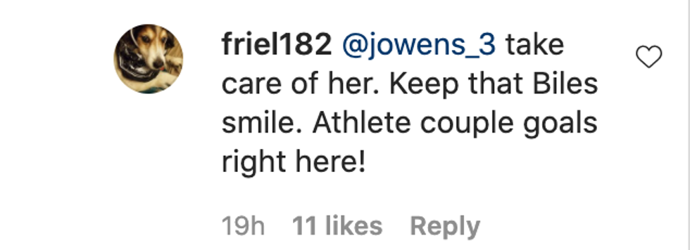 Unable to hide his praise for Biles in the comment section was Biles' boyfriend, Jonathan Owens.