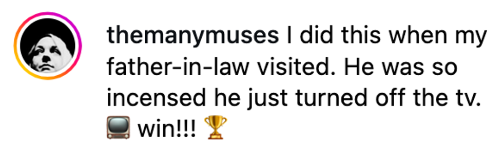 "Grab the TV remote, go to menu, go to controls, parental controls, edit channel list, then delete Fox News, and peace, health and mental happiness will result.”