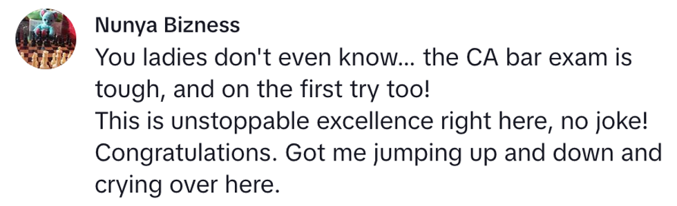 "POV: you're a single mom, and you pass the CA Bar Exam on the first try."
