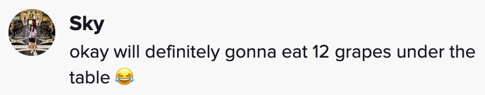TikToker @lolkarli chose the grape-eating variation and wrote:
