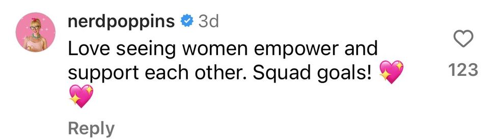 “Sisterhood came through all in pink to celebrate my performance in Barbie last night. I love these women with all my heart.💕