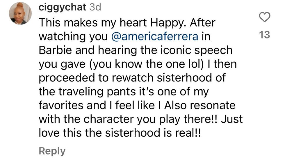 “I was so happy to celebrate my denim sister @americaferrera She’s the heart and soul of @barbiethemovie because she’s the heart and soul of everything she’s a part of.”