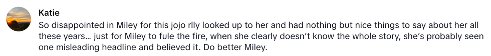 However, the majority of commenters chimed in on both the video of Cyrus' remarks and Siwa's follow-up post, and they weren't very sympathetic to Siwa. Notably, Siwa had "come out" as a lesbian in 2021, but then got together with Chris Hughes, a fellow cast mate on Big Brother UK.