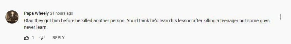 "You'd think he'd learn his lesson after killing a teenager but some guys never learn."