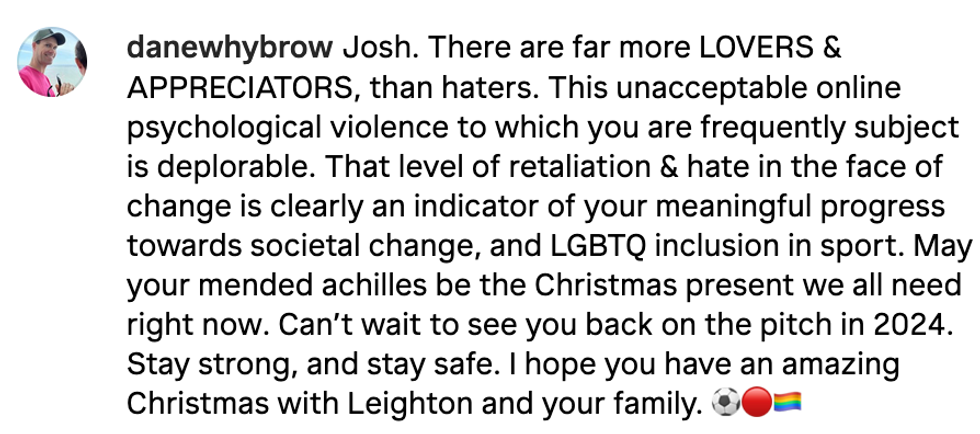 "I’m hand on heart so proud of how much my football club and the LGBTQIA+ community have grown in the world of football but we have to remember there is still a huge amount of work left."