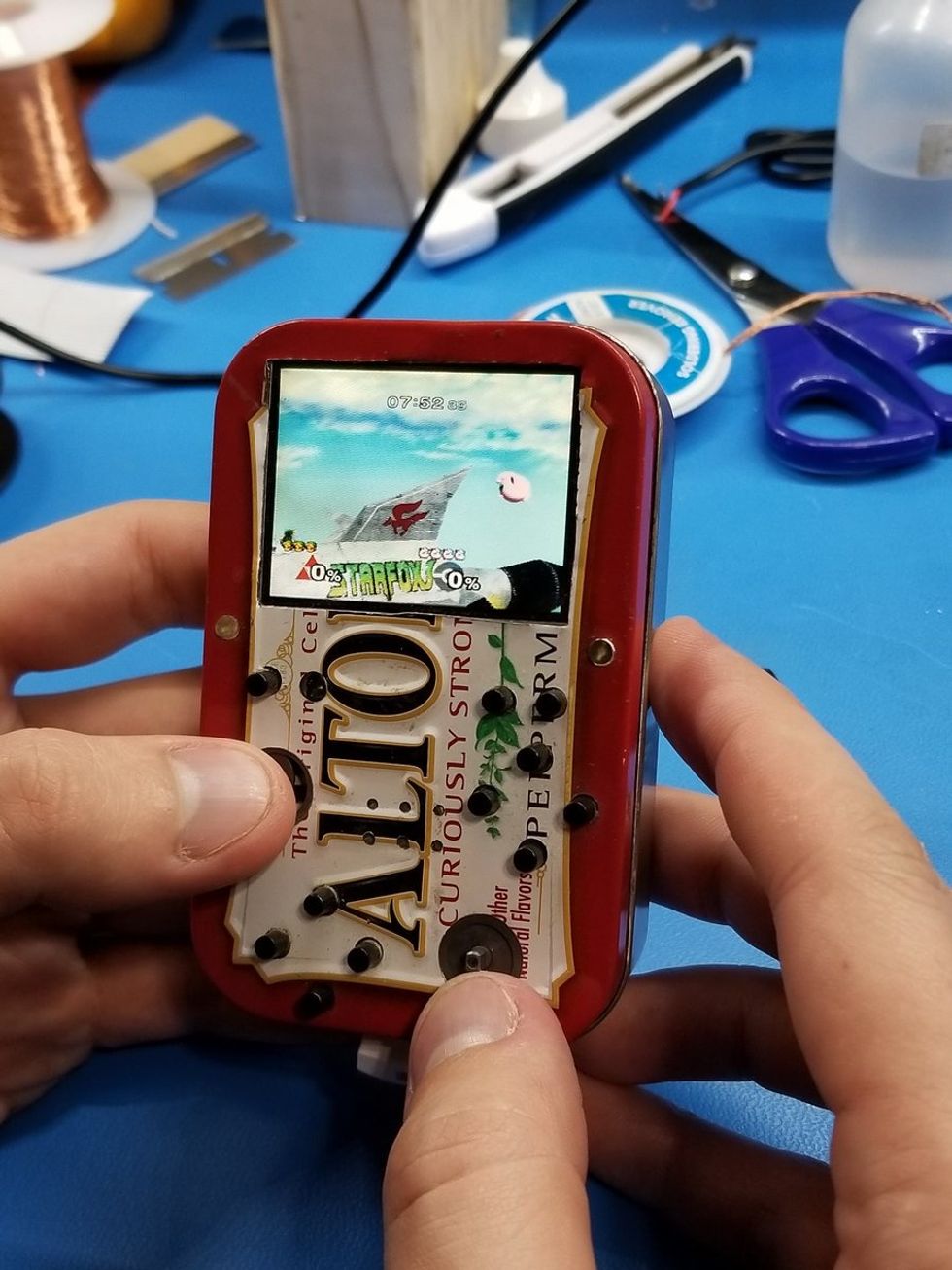 Aden Shank, 23, fitted the circuitry of the games console inside a tin of Altoids and added controls and a display to its front.