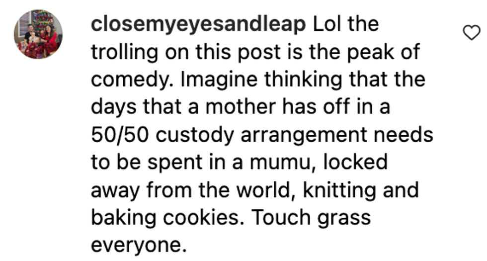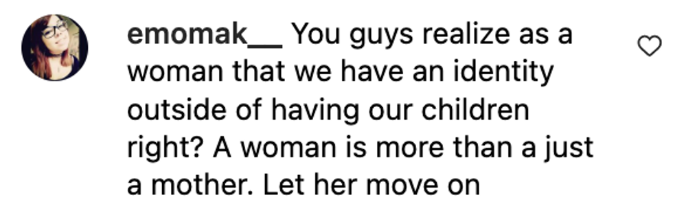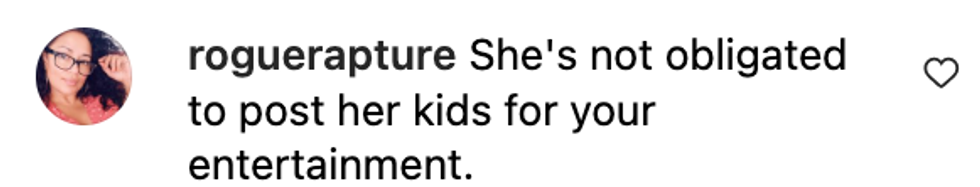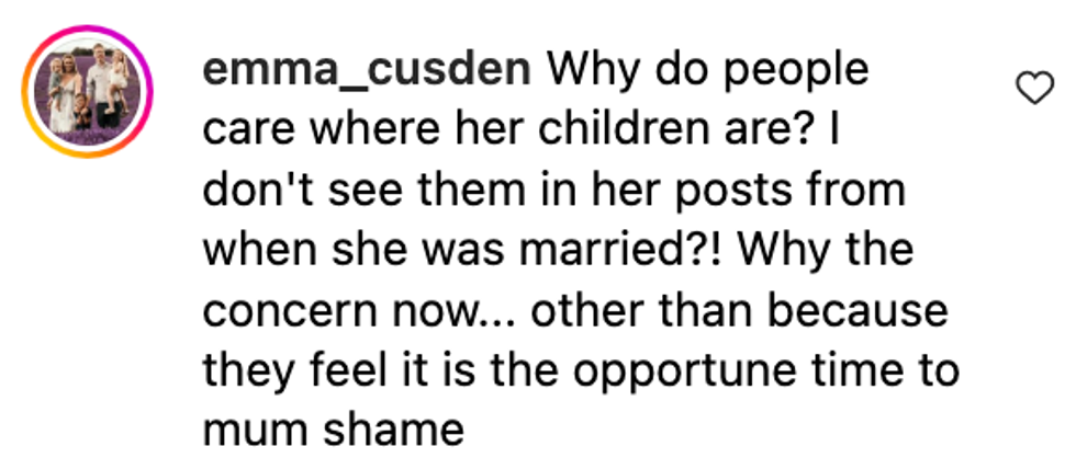 Others noted that her ex's posts that exclude their children aren't flooded with the same kind of comments.
