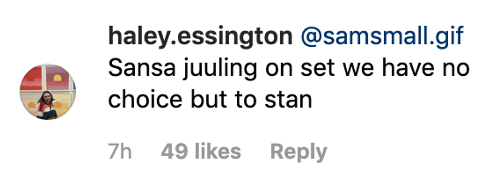 Sophie Turner, who played Sansa Stark, didn't have much to say in her post, except: