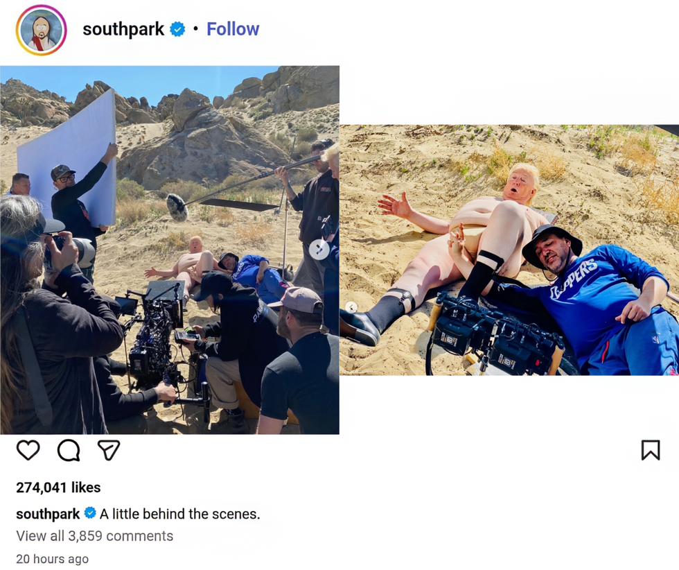 On Tuesday, Trey Parker and Matt Stone—the creators of South Park—shared behind-the-scenes photos from the creation of the "live-action" portion of the season 27 premiere that aired July 23.