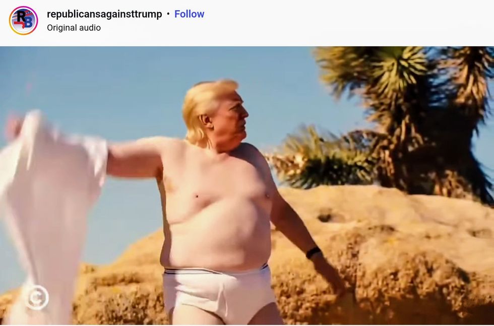 The ad featured the AI CGI-generated live-action version of Trump. It opened on a desert through which the POTUS is trudging.