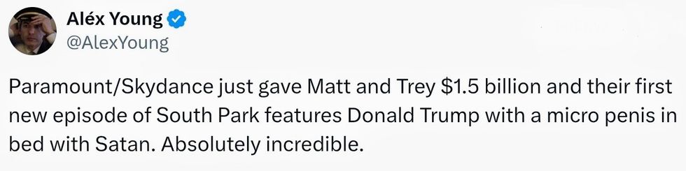After two years, season 27 of South Park premiered on Wednesday and featured more of MAGA Republican President Donald Trump than most people ever want to see. The 79-year-old POTUS, his attempts to dodge his promise to release the Epstein files, and his frivolous lawsuits—as well as the parties that pay him off—were skewered by creators Trey Parker and Matt Stone.