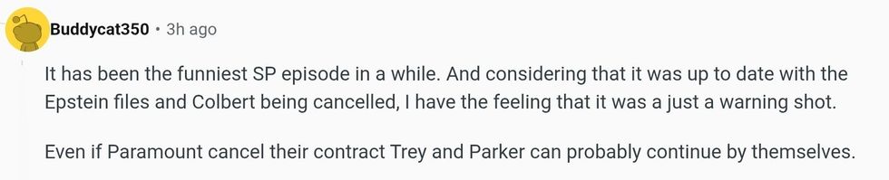 The episode also tackles CBS's decision to cancel The Late Show With Stephen Colbert. CBS parent company Paramount recently inked a deal with Parker and Stone worth $1.5 billion for the streaming rights to South Park.