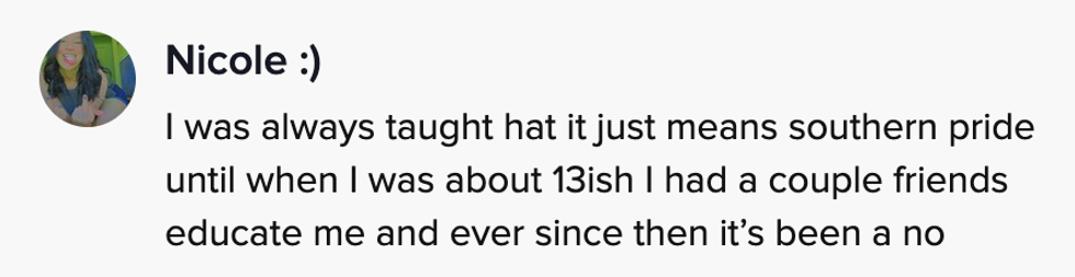 Danielle, who goes by @tiktok_hates_me on TikTok, said she grew up in the South and was never taught the flag—associated with the Confederacy and the glorification of the Civil War—symbolized White supremacy and slavery.