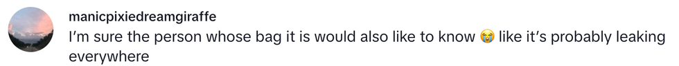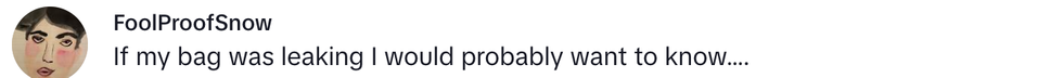 Others mentioned that the owner of the leaking bag would have likely wanted to know that their things were probably being ruined, as well.