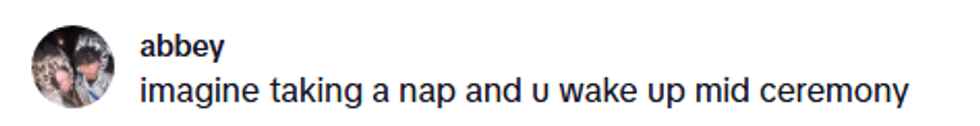 In her video of the nuptials, TikToker @katrinabadowski smiles to the camera, looking somewhat confused, with the text overlay: