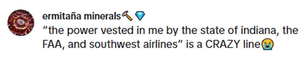 "By the power vested in me by the state of Indiana, the F.A.A., and Southwest Airlines, I now pronounce you man and wife."