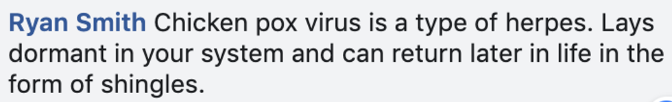 Several people didn't seem to understand that chickenpox and cold sores are caused by herpes viruses, or just how common the viruses are.