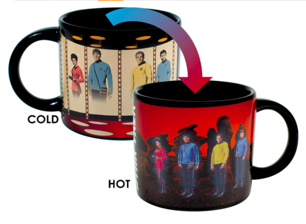 This heat changing mug has Kirk, Spock, McCoy, and Uhura start at the transporter room and appear on a Planet's surface when you add your favorite coffee or tea. The colder the weather gets the more appropriate this gift is, so it's perfect for a Holiday party. Energize!