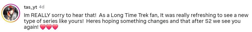 "We’re grateful to Alex Kurtzman, Noga Landau, Gaia Violo, and the entire cast and crew who pushed storytelling boundaries in the spirit of Gene Roddenberry’s vision. We look forward to sharing the upcoming second and final season with everyone, and continuing to celebrate the cast, crew, and all that was accomplished with this series."
