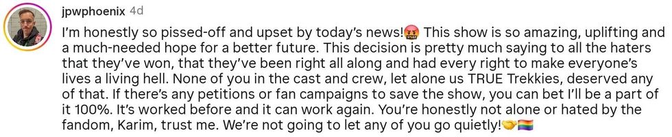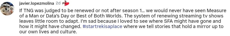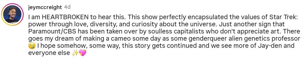 Den of Geek headlined their story about the cancelation: "Star Trek: Starfleet Academy’s Cancellation Is a Bad Sign, Even If You Didn’t Like It." Other websites and publications sounded the alarm too, calling the cancelation "scary" and a "tragedy."