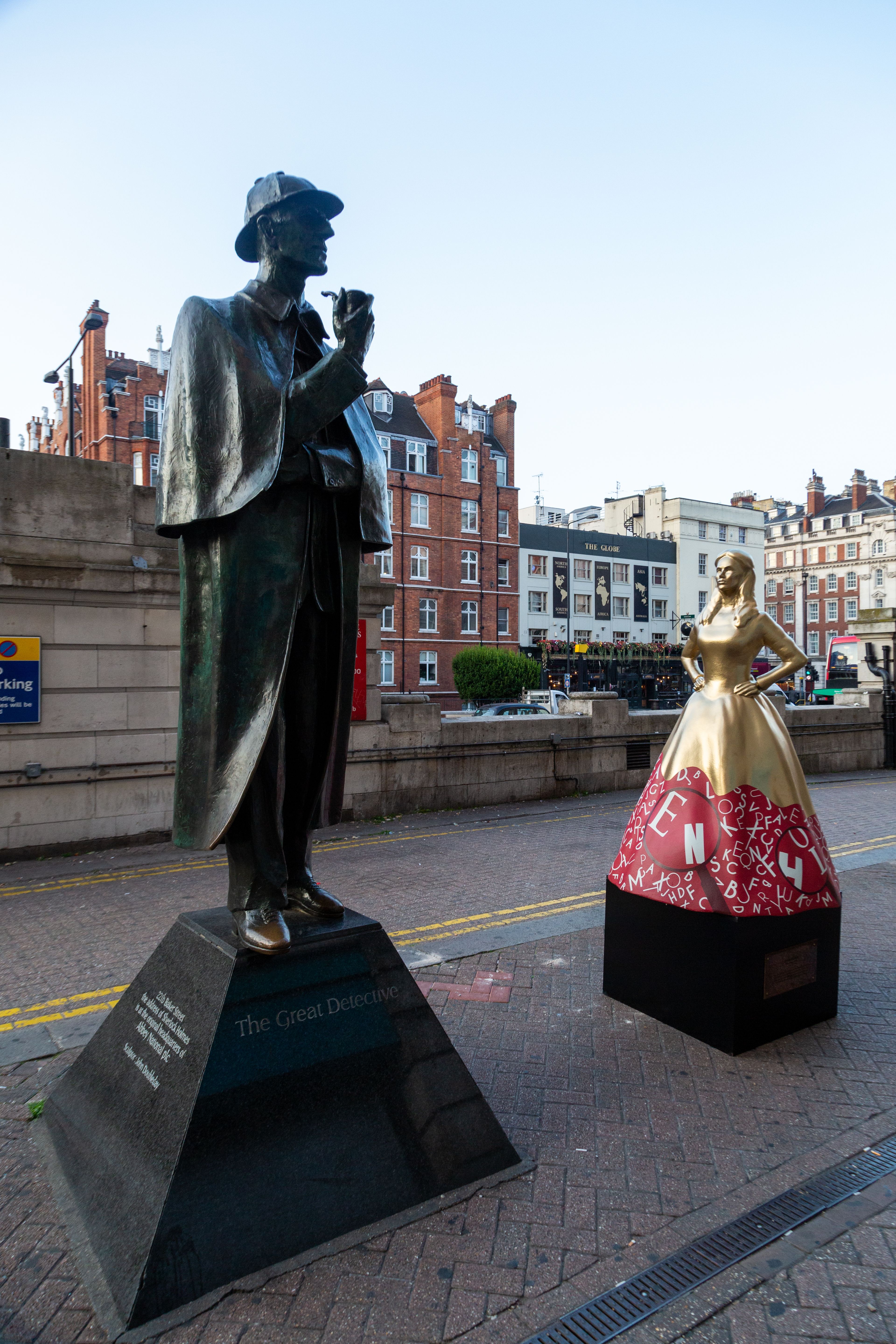 The temporary statues are inspired by the release of the Netflix film Enola Holmes, starring Millie Bobby Brown as the younger sister of Sherlock Holmes.