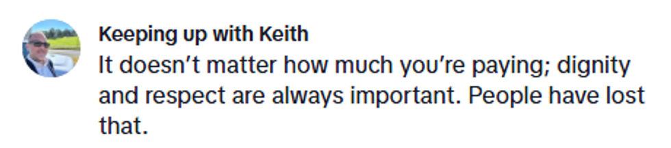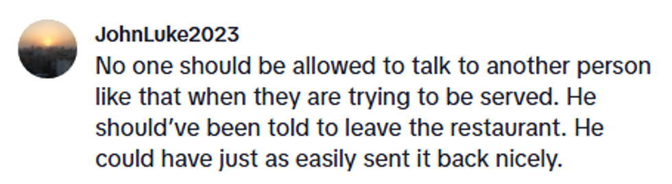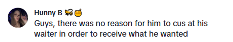 When the TikToker approached a customer's table, the man looked up at him, disgusted, and said: