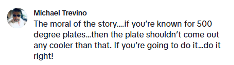 "So, was he happy? Yeah. Yeah, he was. But I’ll never forget the way he reacted when his plate was not sizzling."