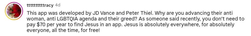 According to Vice, Hallow was funded by billionaire conservative political activist Peter Thiel and his hand groomed protégé JD Vance, whom Thiel and the Heritage Foundation had installed as MAGA Republican President Donald Trump's Vice President. All of Trump's judicial appointments have also been from Heritage Foundation shortlists.
