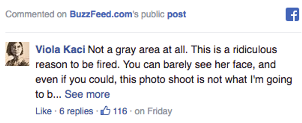 As a company, if they feel what I do outside of my job is going to jeopardize their business, that's fine. It’s just disheartening to me because I feel like home life and work life are two totally different things. I was a model employee, I was moving up fast. I had a promotion within seven months. This one thing, for me, was the reason I was booted."