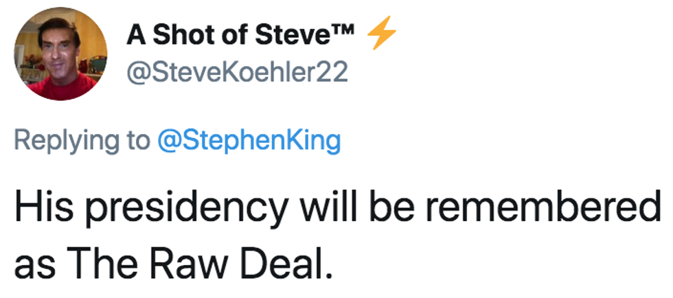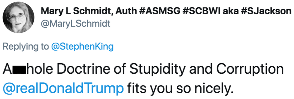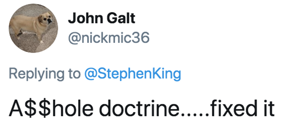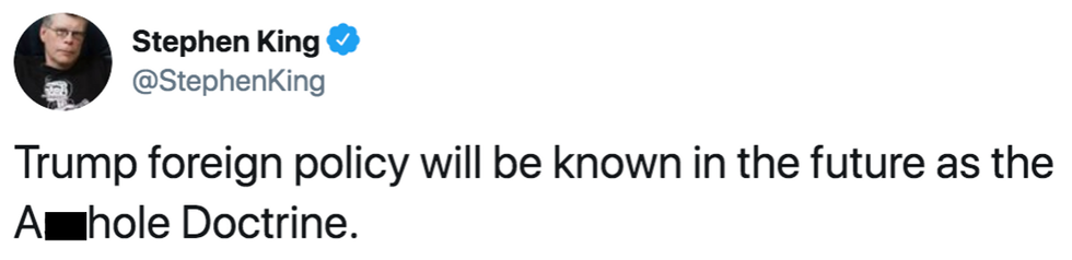 Best-selling horror author Stephen King, whose latest book The Institute: A Novel came out in September, pulled no punches on Monday when he gave a scathing nickname to President Trump's approach to foreign policy.