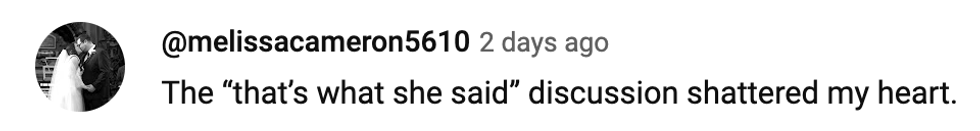 The line, which was so iconic that many don't even know the source, was the reply "That's what she said!"