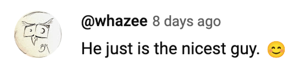 People will roll down their car windows to yell it at him in the street, and ask him to sign autographs of the line.