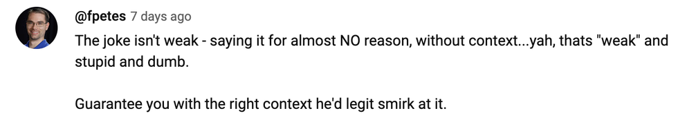 “It was fun in the moment, and certainly that character thought it was funny, which was the joke, because it was even a bad joke back then. And the character did not have a good sense of humor. I think people forget that, that it was coming from a place of mockery.”