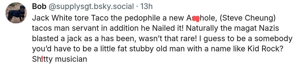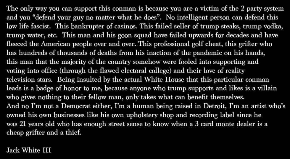"Jack White is a washed up, has-been loser posting drivel on social media because he clearly has ample time on his hands due to his stalled career."