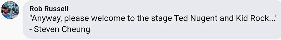 Steven Cheung: “Jack White is a washed up, has-been loser posting drivel on social media because he clearly has ample time on his hands due to his stalled career.”Ironic. I assume Cheung is aware of his boss's incessant rants on social media? Nah, too stupid.
