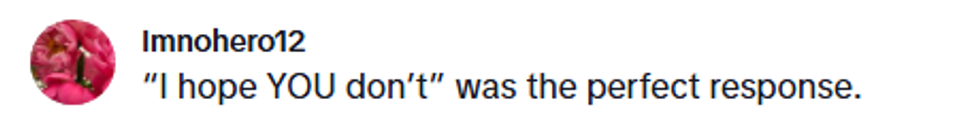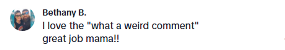 The man ended the conversation by making another weird comment, stating that he hoped that the TikToker did not live in the area, perhaps to avoid further conversations like this, and the mom Uno-reversed the comment, saying she hoped he didn't instead.