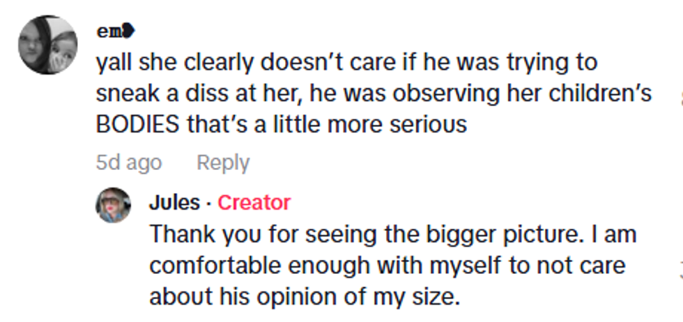 "Don't comment on my kids' bodies."