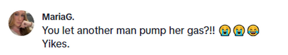 She jokingly asked how many women he'd pumped gas for that day, and he said she was "the one and only."