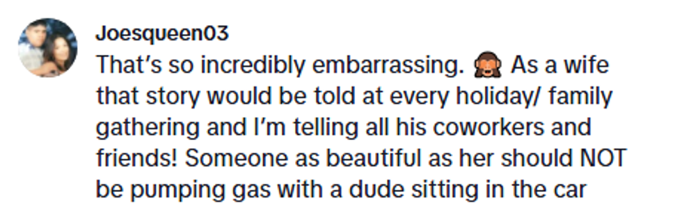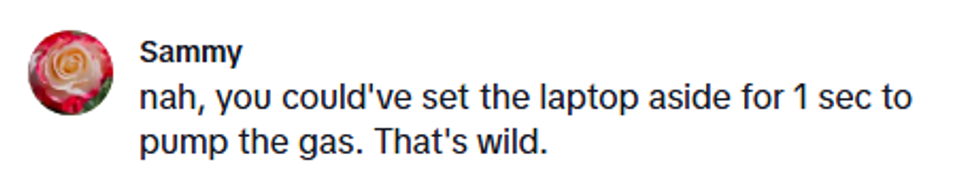 TikTokers already thought that it was a bad look that the wife was driving while the husband was working on his laptop, and it was worse that she was also pumping the gas when he could've done so.