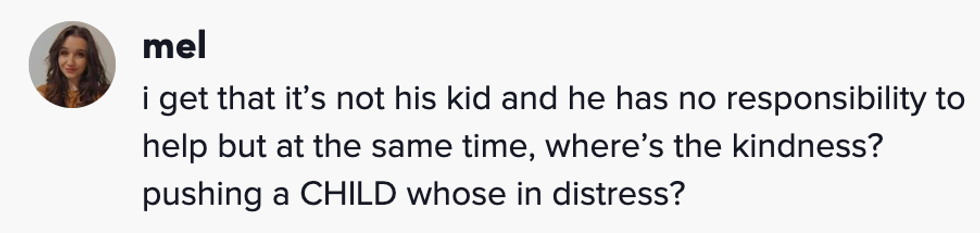 When the boy got close to the bench, he was shoved away by a man who was sitting there.