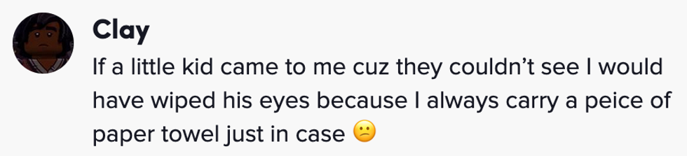 The text overlay explained Burton's son walked aimlessly without clear vision because there was "water in his eyes [and] couldn't see."